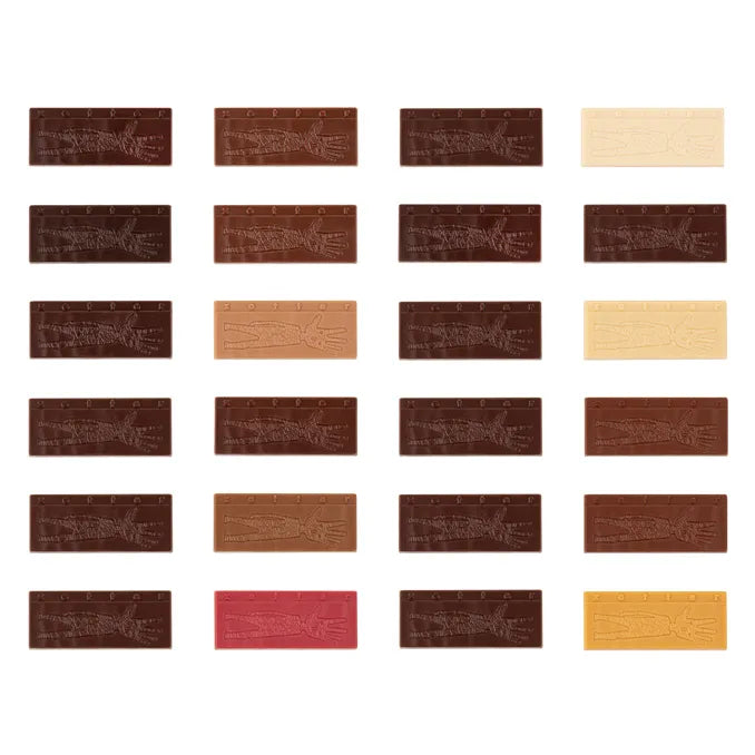 Der aufklappbare freistehende Labooko-Adventkalender im stilvollen rot-goldenen Design, gefüllt mit 24 unterschiedlichen Sorten für Fans von erstklassiger purer Schokolade. Kleine Labooko-Minis entführen Sie in die Welt des Kakaos, mit ansteigenden Kakaoprozenten von süßer Milchschokolade bis hin zu einer reinen Tafel mit 100 % Kakao.