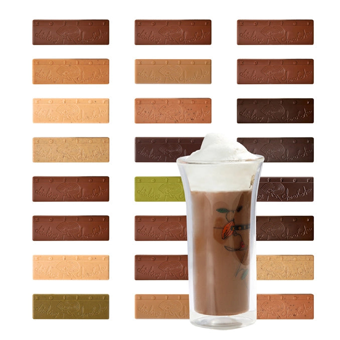 Fajták: 1. Mandulás Nugát 2. Isten Itala 3. 1001 Éjszaka 4. Fahéjas Banán 5. Karamellás 6. Diós Nugát 7. Téli Varázslat 8. Mézes Fahéjas 9. 100% Kakaó 10. Fehér Vaníliával 11. Kenderital 12. Keserű Klasszikus 13. Tejes Kakaó 14. Zöld Tea 15. Kávé 16. 1001 Éjszaka 17. Diós Nugát 18. Chilis Bird's Eye 19. Téli Varázslat 20. Isten Itala 21. Fehér Vaníliával 22. Mandulás Nugát 23. Karamellás 24. Mézes Fahéjas